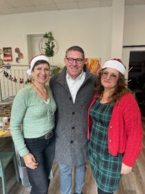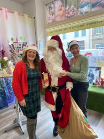 40 Stiefelchen, bestückt mit kleinen Aufmerksamkeiten, standen in unserem großen Schaufenster und luden die Eltern und ihre Kids in unsere Einrichtung ein. Pünktlich zum Veranstaltungstag trafen auch unsere niegelnagelneuen Flyer ein und somit konnten wir vielen, vielen Eltern gleich unsere neuen Angebote wie bspw. unsere Elternseminare fürs Jahr 2026 kundtun. Der Nikolaus besuchte uns zu späterer Stunde auch noch und sogar der Bürgermeister von Bernau, André Stahl, ließ sich eine warme Milch mit Bernauer Honig und Orangenstreuseln schmecken.