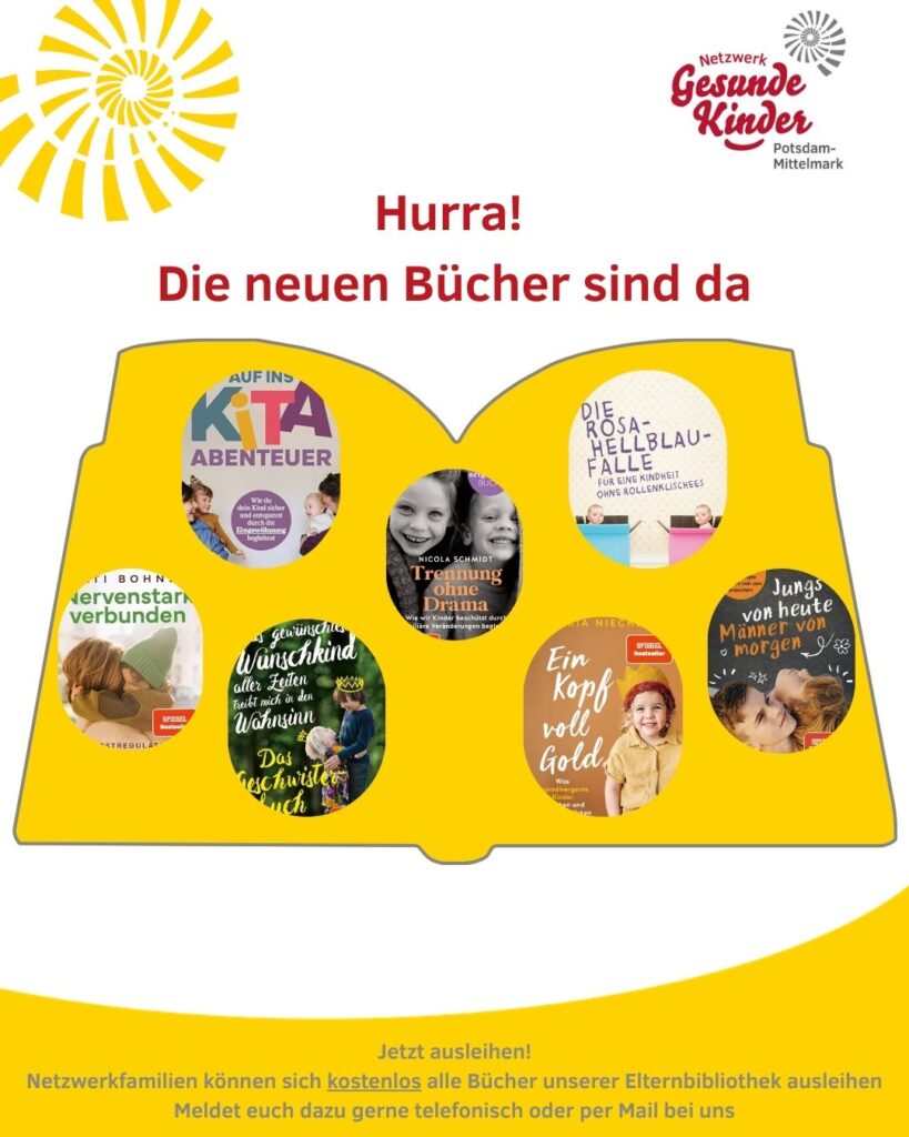 Ab sofort stehen unseren Netzwerkfamilien neue, sorgfältig ausgewählte Bücher rund um die Themen Familie, Kinder, Gesundheit, Entwicklung und Alltag zur Verfügung.