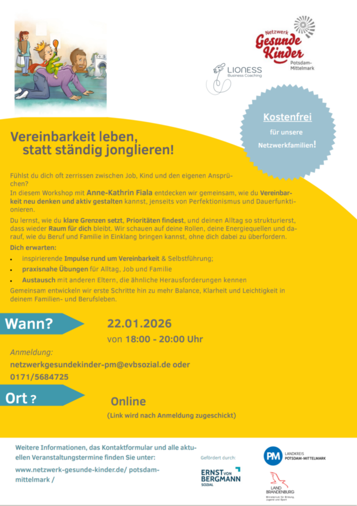 Vereinbarkeit leben statt ständig Jonglieren: Elternwissen-Online am 22.01. ab 18 Uhr