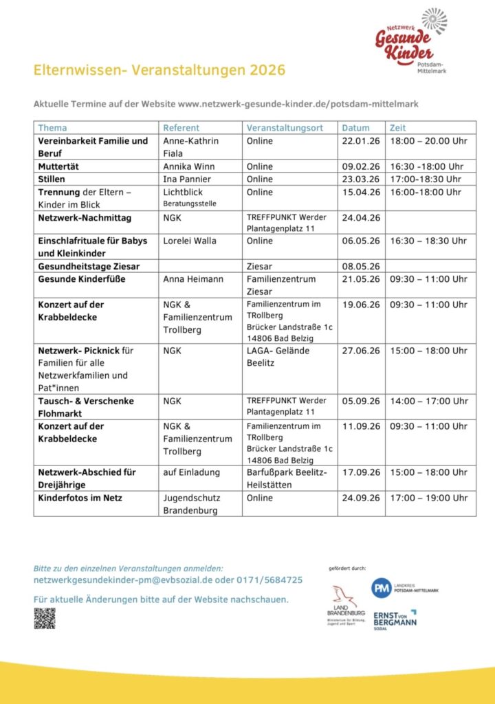 Anmeldung zu den einzelnen Veranstaltungen gerne unter netzwerkgesundekinder-pm@evbsozial.de oder 0171 56 84 725